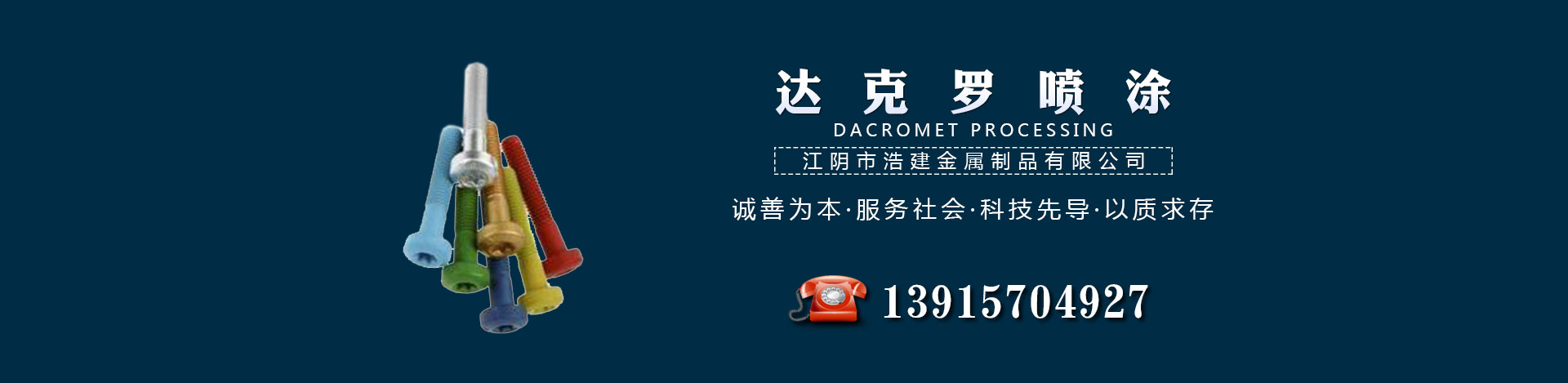 江陰市浩建金屬制品有限公司創建于2017年9月,主要業務:金屬表面處理,達克羅加工處理等。公司是專業從事金屬表面處理的高科技企業,致力于環保的金屬表面處理。公司還配備了多種 的計量、理化檢測儀器和設備,以保證產品的高質量。起初僅用于國防...詳情》